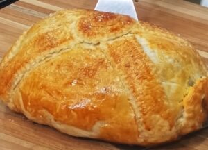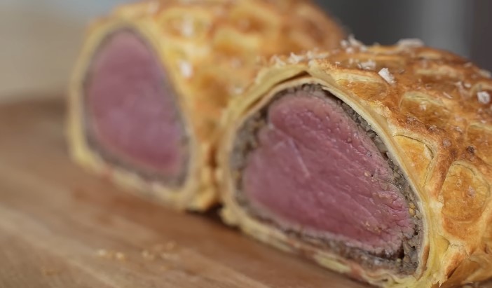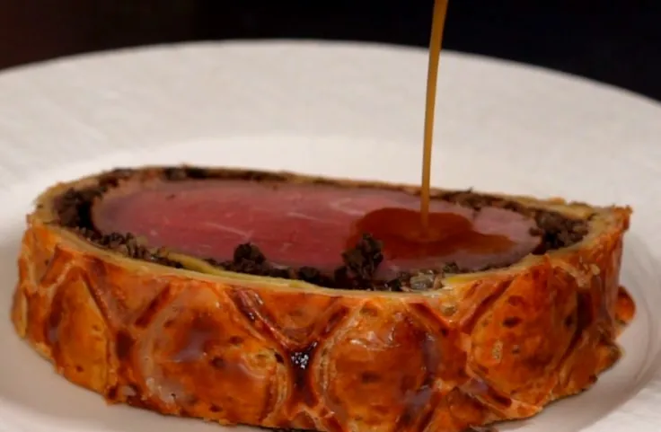 With its buttery puff pastry, tender beef fillet, savory mushroom duxelles, and a thin layer of prosciutto, it creates a satisfying blend of textures and flavors.